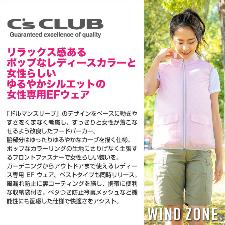 C's CLUB-シーズクラブ- WIND ZONE WZレディースベスト 商品の特長 優しい印象のパステルカラー空調服。