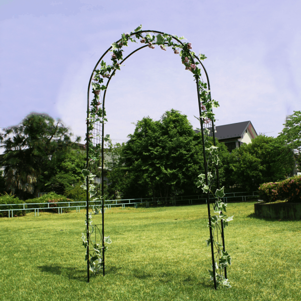 つる性植物を絡ませるのに最適で、つるが絡む前でもデザインアーチとして庭での存在感をだします。